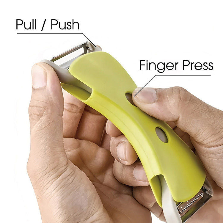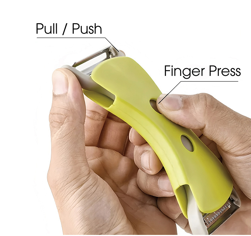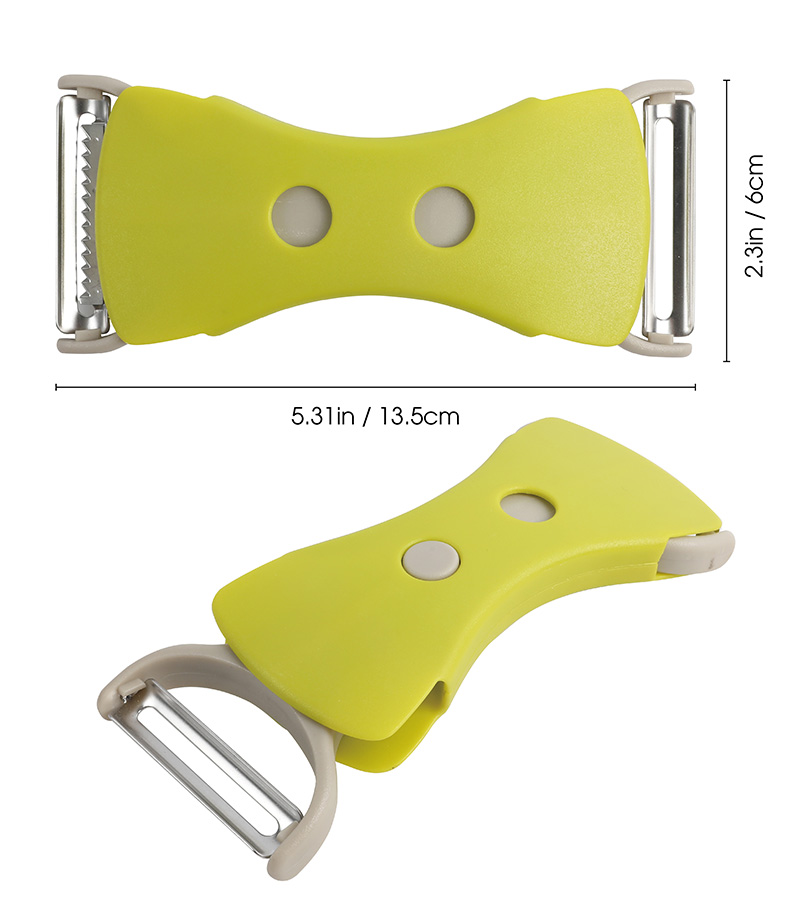 · Dual Sharp Blades: Flat blade peels fruits/veggies without damaging flesh; serrated blade shreds easily
